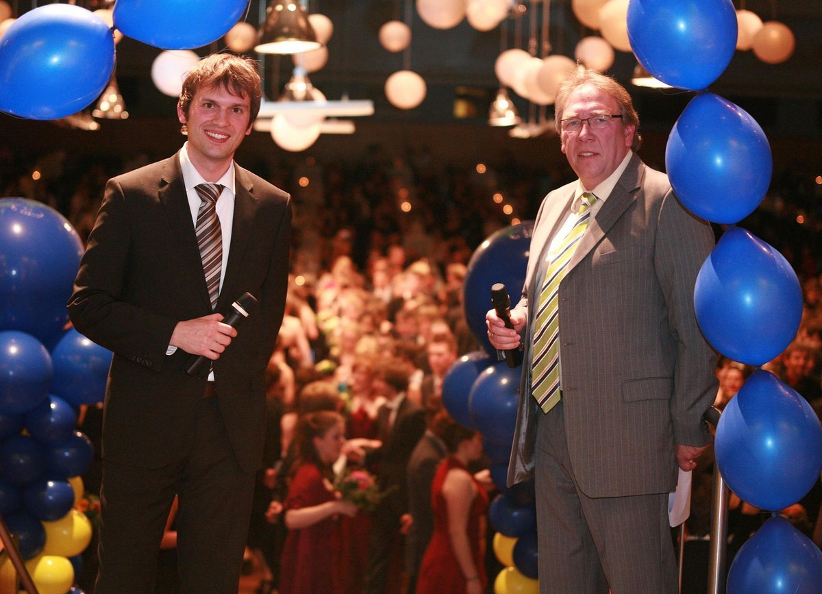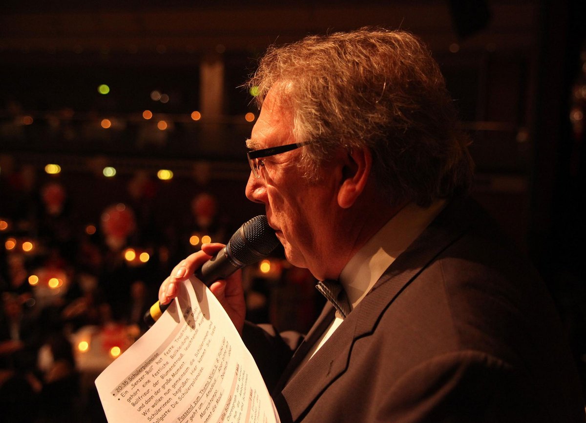 Im Geburtstagsjahr von Patrick 1978 erweiterte er sein Repertoire und betrat erstmals die Bühne als Moderator neben Horst Willius-Senzer bei einem Ball. Über die Jahre hinweg war er an mindestens 100 Bällen unserer Tanzschule aktiv beteiligt.